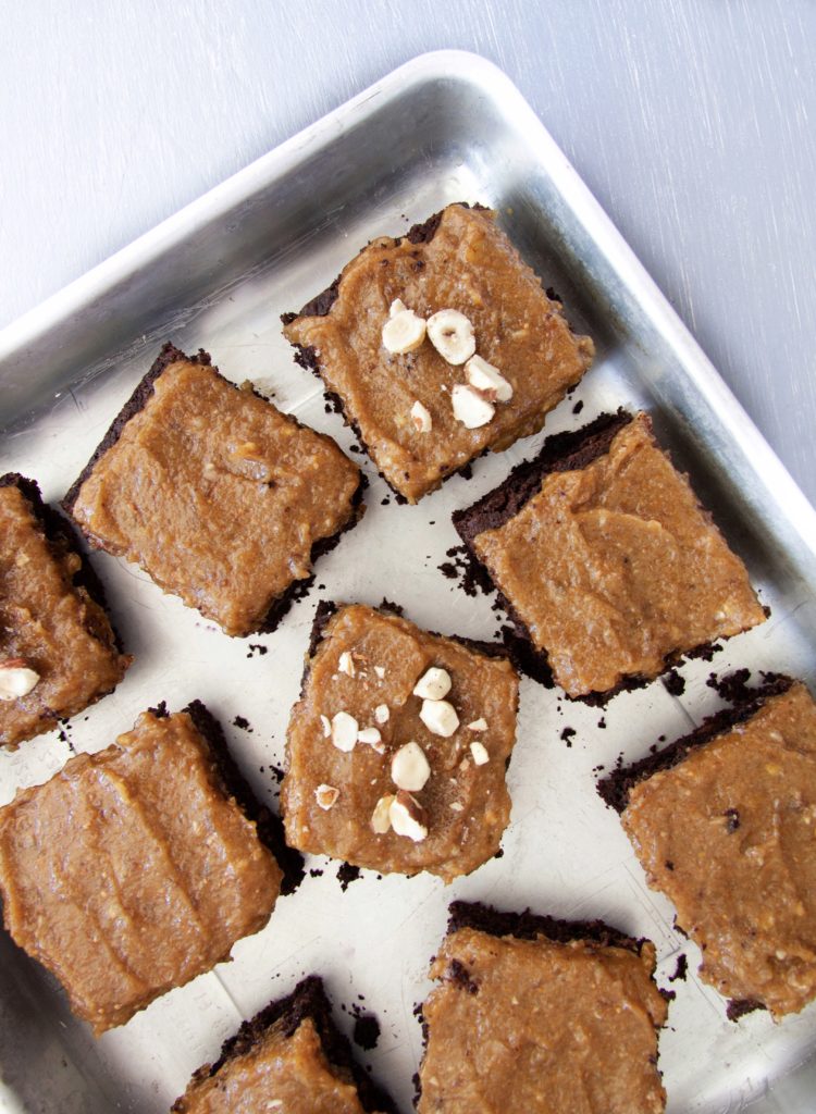 For the fig caramel, mix dried figs and almond milk in a blender until smooth. Chill in the fridge until brownies are cooked.