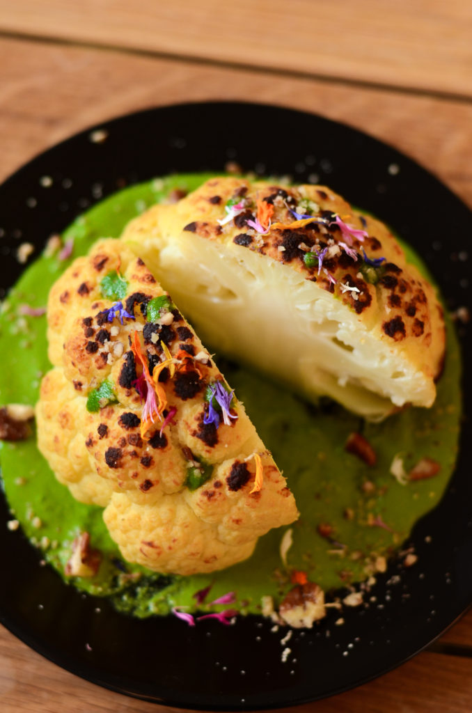 What if you could just put an entire vegetable in the oven for it to taste amazing? Well, with cauliflower, you can. As it turns out, there are a lot of delicious recipes you can do with this vegetable including gnocchi and fried rice. Here is my whole roasted cauliflower recipe, perfect as a starter or as part of a main dish to share. The green sauce will bring some extra flavor, texture and taste to the crispy-outer and tender-inner cauliflower.
